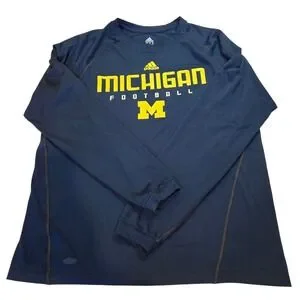 Adidas Michigan Wolverines Football Long Sleeve T Shirt Men's Large Navy Yellow