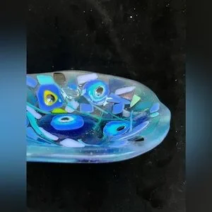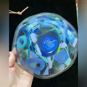 Island Memories Design Glass”Fused Art Glass Handmade 7”x3”Bowl Clear