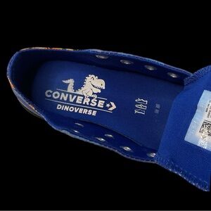 The Converse All Star Dinoverse Shoes in size 12 JUNIOR are a stylish and comfortable option for young sneaker enthusiasts. With a low-top design and trendy dinosaur theme, these shoes provide both support and fashion-forward flair. The iconic Converse brand ensures quality and durability, making them a great choice for active kids looking for a unique and fun footwear option.