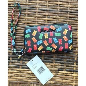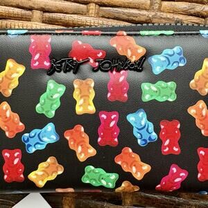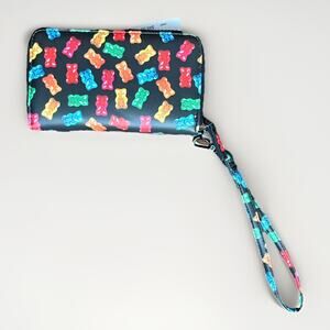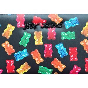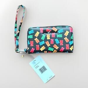 NWT BETSEY JOHNSON BLK Faux LTR Rainbow Gummy Bear Zip Wallet Wristlet XOKARA