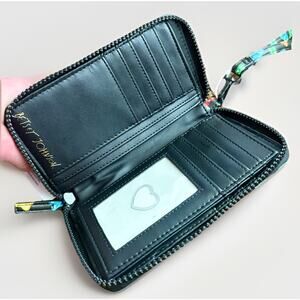 ๐ Y2K-Style BETSEY JOHNSON Black with All-Over Multi-Color โGummy Bearsโ Pattern ALL-IN-ONE Zip-Around Wallet with Matching Detachable Wristlet Strap - XOKARA