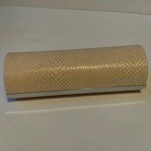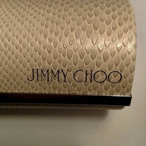 Jimmy Choo Eyeglass Case w/magnetic closure Beige and Silver with Faux snake like embossing. Very clean with beige velvet lining