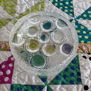 Stunning Lalique glass box. Features intricate floral patterns. Ideal for small treasures. Originally designed by René Lalique in 1926. This particular design is known for its intricate frosted glass details featuring a motif of birds and grapes or pheasants and cabochons around the sides, with high-relief clear glass "bullets" on the lid.