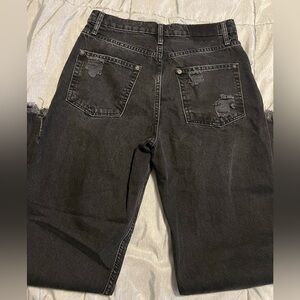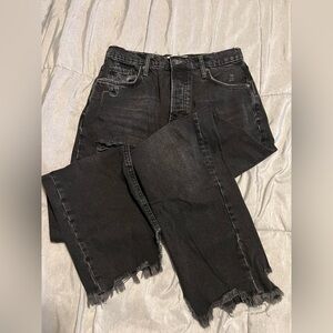 Stylish black distressed jeans. High rise fit. Straight leg. Waist and inseam measurement in pics. Perfect for casual wear.