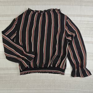 Twine & String Black Brown White Striped Peasant Blouse Size XL NEW