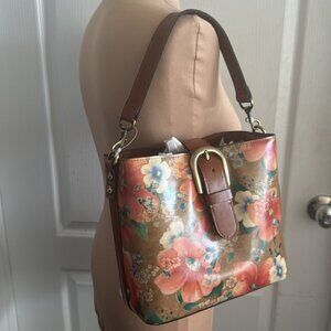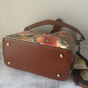 Patricia Nash Irving Bucket Handbag Leather Disstress Apricot Blsms Crossbody