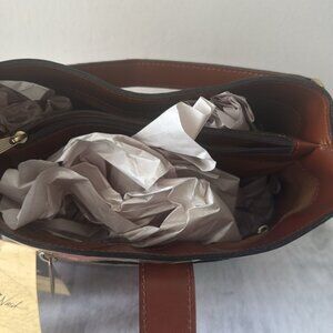 Interior: 1 center zip compartment, 1 rear zip pocket, 2 front slip pockets; faux suede lining, 100% polyester