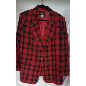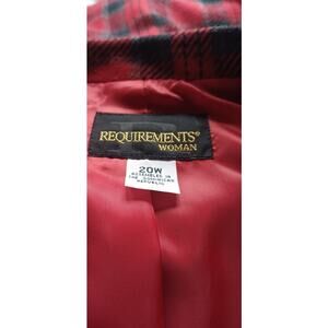 Vintage Requirements Red Black Plaid Blazer Size 20W Wool Blend Career Jacket