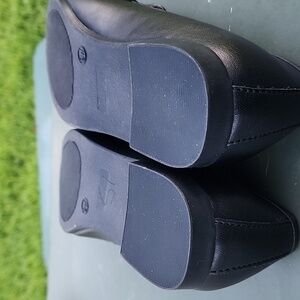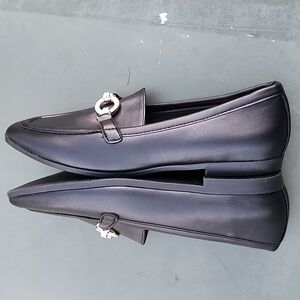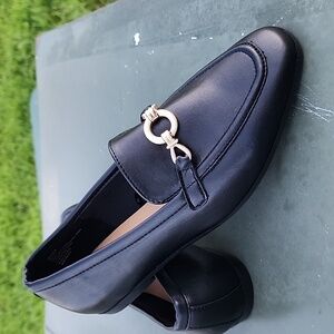 Elegant black loafers featuring a stylish gold buckle. Perfect for any occasion. In brand new condition.