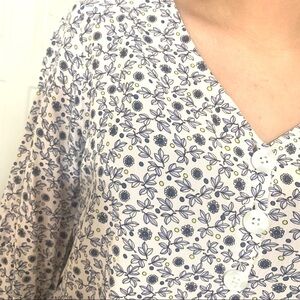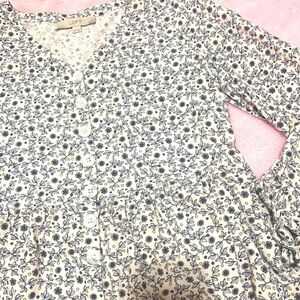 Navy and white beautiful floral blouse with tie sleeves