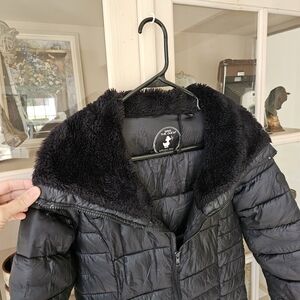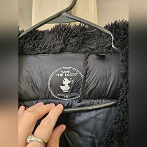 Stay warm and stylish this winter with the Save The Ducks Women's Fur Collared Coat in Black/ "Ebony Grey"