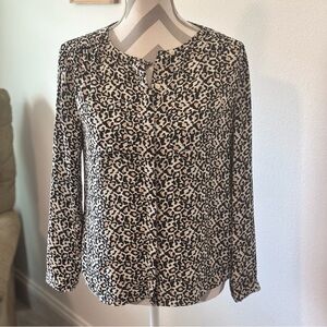 LOFT Petite Women’s Blouse – Black & Tan Animal Print Long Sleeve Top – Size Small Petite