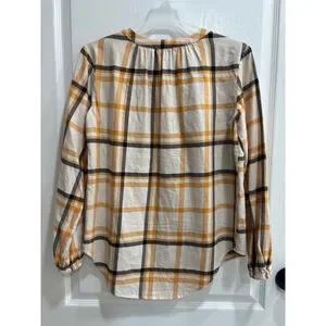 Women's LOFT Outlet Plaid Peasant Top, XS, Ivory Navy Yellow
