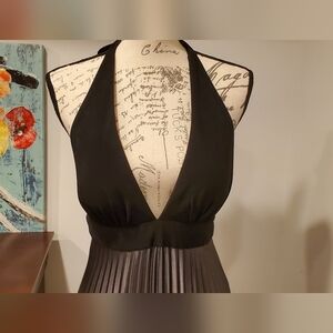 XSCAPE Women's Halter Neck,Open Back, Pleated Black /Silver Maxi Dress Size 8.