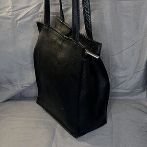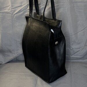 Vintage Leather Zipper Slouchy Tote, Small, Black,