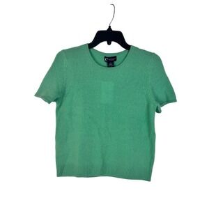 C by Bloomingdale's Cashmere Short Sleeve Sweater Aqua Green Women's XL