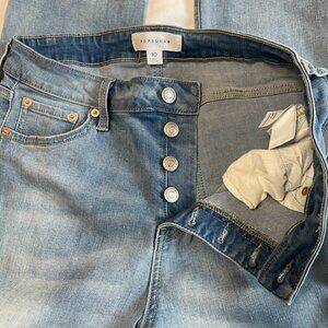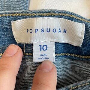 POPSUGAR Medium Wash Straight Leg High Rise Raw Hem Sz 10 W/ Tummy Control