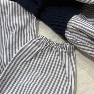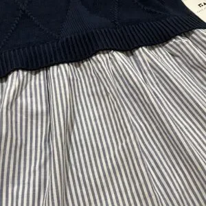 Charming kids dress featuring a navy bodice and white striped skirt. Perfect for any occasion. Brand New, With Tags !!
