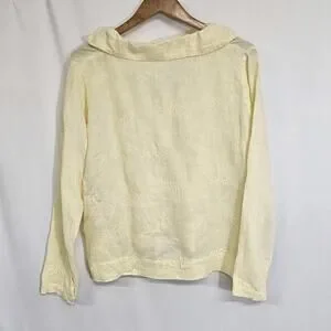 CP Shades Yellow Linen Embroidered Long Sleeve V-neck Boxy Oversized Top Size XS