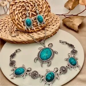 Bohemian Silver Turtle Drop Earrings with Turquoise Accents