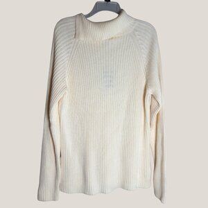 Land’s End Cream Ribbed Knit Sweater – Button Collar Pullover, Cozy Winter Class