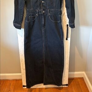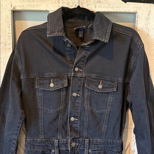 Chic, long sleeve denim jacket. Features classic stitching, front pockets, and middle slit on front skirt. Button and zip closure. Great versatile piece-can be dressed up down! ⭐️