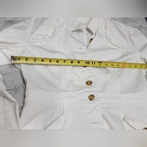 ALLEN B By Allen Schwartz White Denim Jacket Women's Size Large. Measurements are shown in pictures. Pre-owned; however, the denim jacket has been well-cared for, as shown in pictures. Smoke-free and pet-free home.