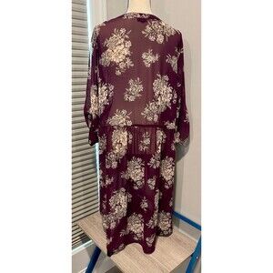 Torrid Floral Chiffon Hi-Low Button Down V-Neck Tunic Purple/Maroon Size 2
