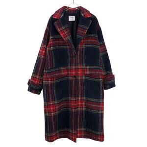 Old Navy Oversized Soft-Brushed Plaid Coat Navy & Red Tartan Plaid Wool Small