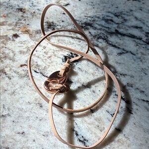 Elegant Miansai bracelet. Features tan leather strap. Gold-tone clasp adds sophistication.