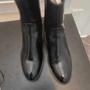 Chic black ankle booties from Zara with a modern design. Ideal for versatile styling. Decided not to wear after walking around, too big for me. These boots are so perfect and so Zara!!