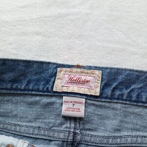 Hollister denim mini skirt in juniors size 7. Gently used condition. Button front fly. Trendy blue mini skirt with frayed hem. Ideal for casual wear.