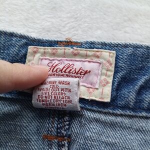 Hollister size 7 32 waist denim y2k Frayed Hem Blue Mini Skirt button front