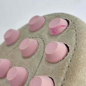 Some ink on the bottom on one of the pink dots, and a groove in the suede on the bottom.