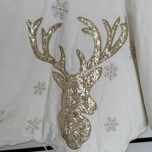 Elegant holiday decor with a gold sequin reindeer design. Perfect for festive home styling.