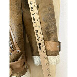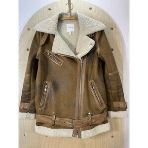 AVEC LES FILLES Coat Worn On TV Eden McCoy Camel Faux Shearling Jacket Moto XS