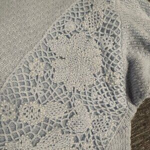 Vtg Jaclyn Smith BEADED Embroidered Sweater Blue Size Large Cottagecore