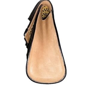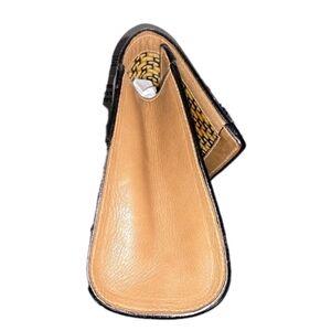 Stylish and classic Gucci sherry line suede clutch in tan with green and red accents. Perfect for everyday use.