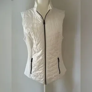 Christopher & Banks Elegant white quilted vest with a zip-up front. Features practical side pockets. Size large.
