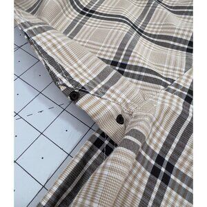 This shirt offers a classic plaid design with durable fabric, ideal for casual or semi-casual wear, combining style and comfort. Like new condition with virtually no signs of wear