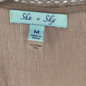 Bohemian Bell Sleeve Blouse V Neck Taupe Flare Button Relaxed Size M She + Sky