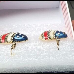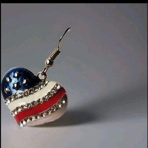 Austrian Crystal Enamel Patriotic Heart Flag Pierced Earrings
