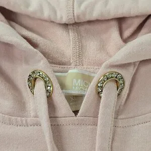 MICHAEL KORS LIGHT PINK PULLOVER HOODIE WITH A GOLD-TONE LOGO WOMENS SIZE XL EUC
