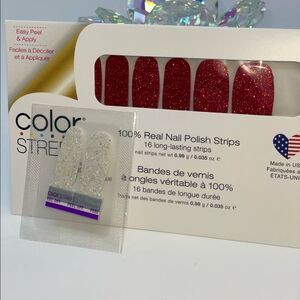 Nail strips include a 100% high quality nail polish base/color/top coat. Salon quality manicure in just minutes. NO dry time, smudges or streaks. Lasts up to 10 days & remove with regular nail polish.