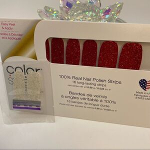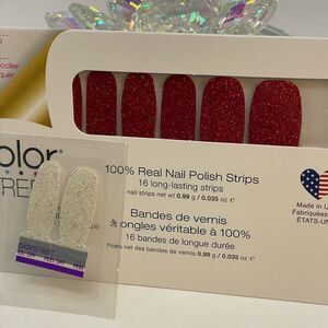 A beautiful RETIRED set to grab hearts. Stunning glitter finish set by Color Street. A-Lister a sparkling red and gold glitter nail strip set.
