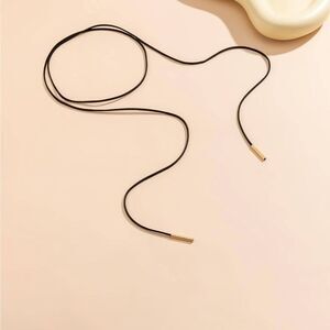 Stylish black necklace featuring gold tips. Perfect for adding a touch of elegance to your outfits .