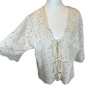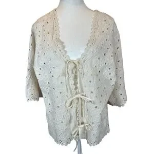 Chic lace blouse with tie front. Perfect for layering. Soft and stylish.