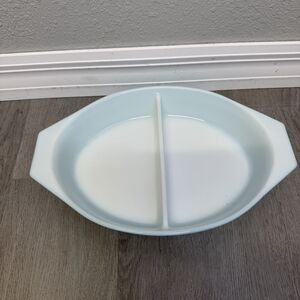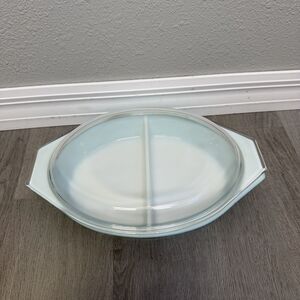 Vintage PYREX Turquoise Snowflake 1-1/2 Quart Divided Casserole Dish w/ Lid
