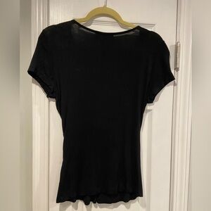 Steven Edwards Size S Black Soft Stretchy Short Sleeve Twist Front V Neck Top