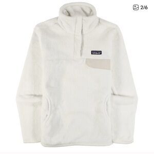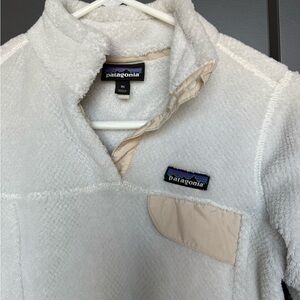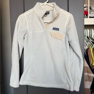 Soft off-white fleece jacket by Patagonia. Features a convenient chest pocket. Worn but great condition